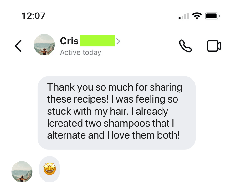 Thank you for this incredible eBook! I've tried several recipes, tailoring each to fit my family's different hair needs, and everyone loves the results. The fact that I can whip up a batch of shampoo quickly with affordable ingredients is a huge plus. This is a must-have for anyone interested in natural hair care.